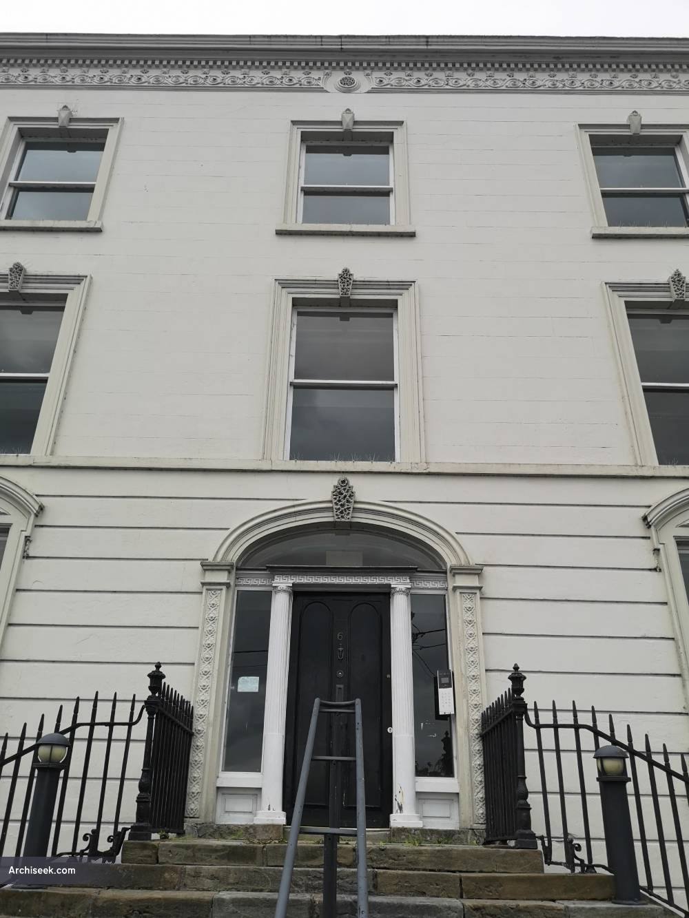 Aviemore House is the most imposing residence in Monaghan both from its grand facade to its positioning on Hill Street. The building is placed on the end of the climb of Mill Street and is visible from the Diamond – at one time this site was proposed for the Cathedral. The heavily rusticated facade however is a sham – added around 1840 to a late Georgian house with the last 6 feet standing clear of the roof line. A very good doorway is reached by a flight of nine stone steps.