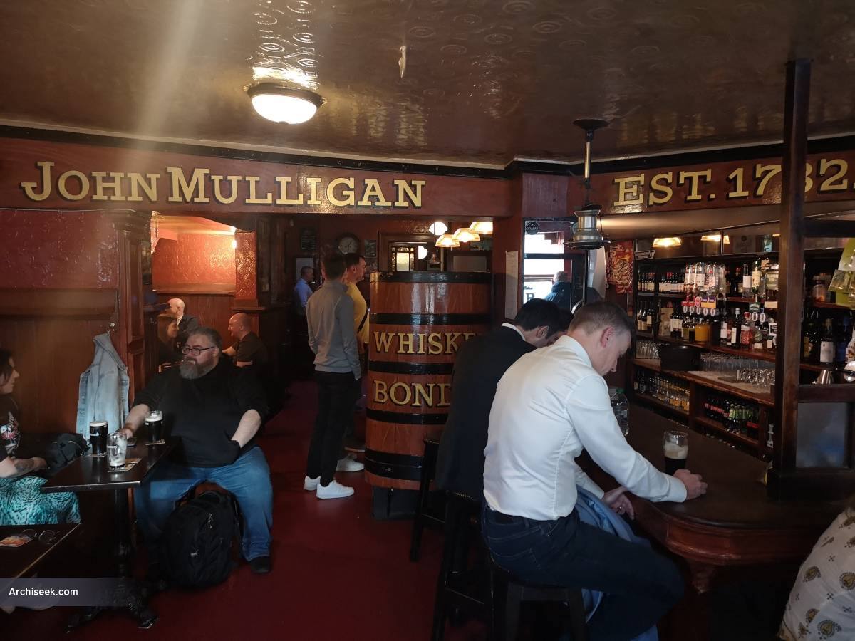 Mulligan’s pub was founded in 1782 and retains much of its original character with its low ceiling and wooden bar. Due to its proximity to the former Irish Press offices, it was a popular haunt among journalists and writers. A sequence of interconnected rooms – the rear room was the setting for a scene in James Joyce’s Dubliners. One of the other rooms has some Art Deco touches, along with a short facade to the street.