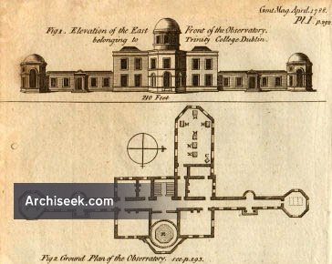 Described in Lewis as “The building fronts to the east, and consists of a centre and two receding wings, the former surmounted by a dome which covers the equatorial room, and is move-able, having an aperture two feet six inches wide, which can be directed to any part of the horizon; around the dome is a platform, which commands an extensive and varied prospect.”