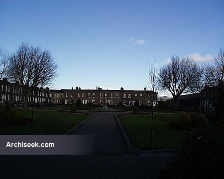 A residential square just off Pearse Street using the street as one side. Originally Queen’s Square, construction began in 1839 and completed aroun 1870 with 57 houses built around a central green. Dublin Corporation bought and reopened it as a Victorian garden in 1889. Renamed Pearse Square in 1920,