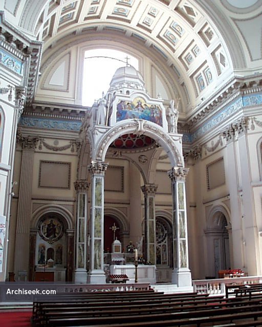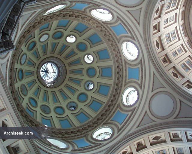Built in 1854 “in the greek style” by Patrick Byrne and later extended by W.H. Byrne who added the portico and pediment circa 1878-81. This pediment is inscribed “Mariae Immaculatae Refugio Pecatorum”. It was destroyed by fire in January 1920 but it was rebuilt and reopened by 1922 under the supervsion of Ralph Henry Byrne. At this time, the massive copper dome was enlarged making it a landmark in this part of the city.