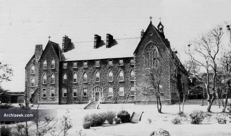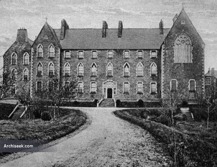 Funded through a public subscription list, construction began in 1862 and was completed two years later in 1864. This is a nine-bay three-storey over basement convent by J.J. McCarthy (1817-82) on a u-shaped plan with a large gabled end bay as full-height chapel and seven-bay two-storey return to the north. Finished in stone – snecked limestone walls with cut-stone detailing. From certain angles the array of pointed windows and grey stonework can seem overwhelming – the spire suggested in the drawing remained just that, suggested.