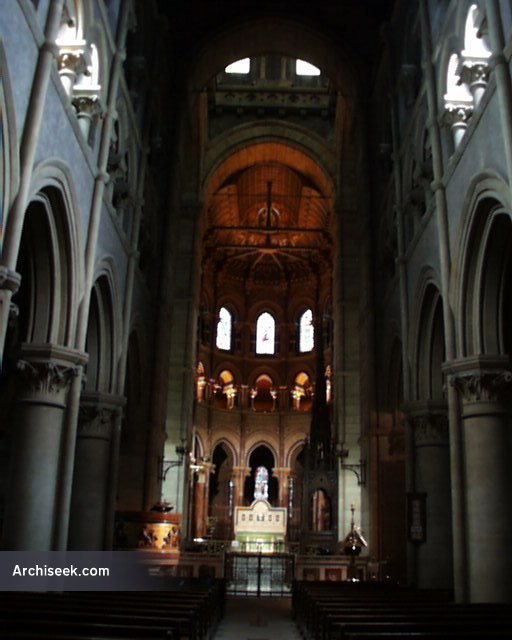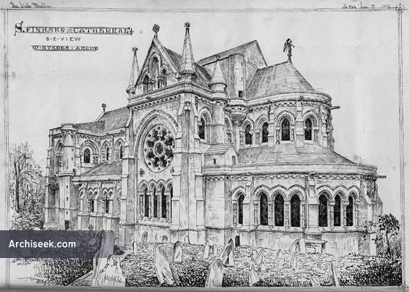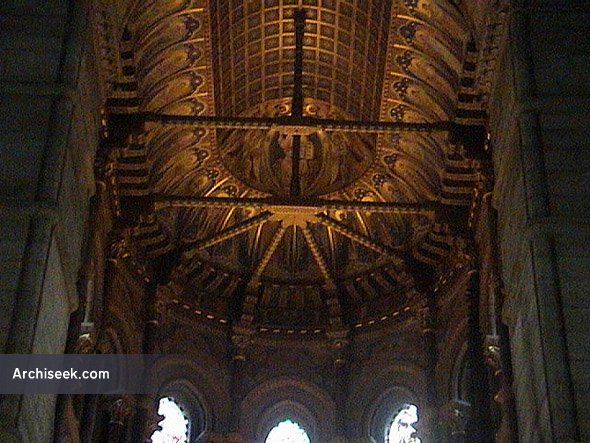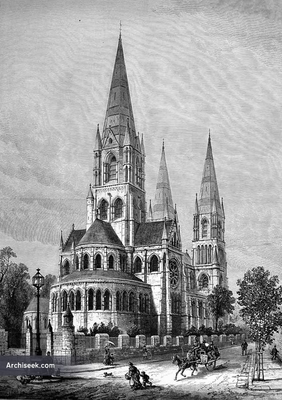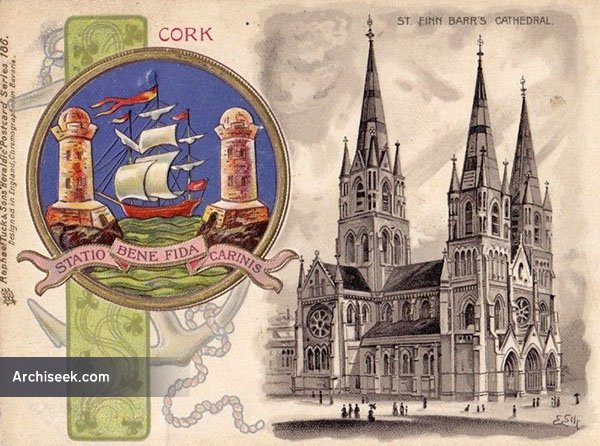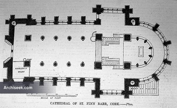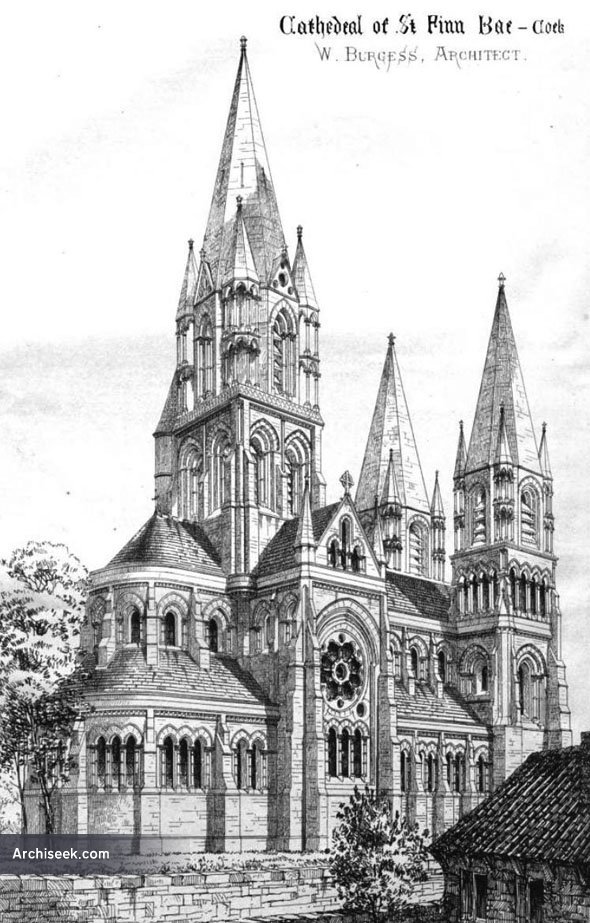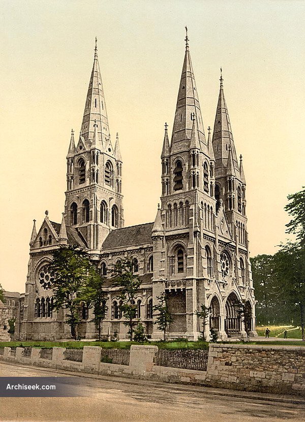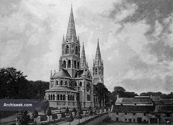 Sited on a hillside above the south channel of the River Lee, St Finn Barre’s Cathedral is a miniature cathedral but a decorative giant. The exterior of this quite small cathedral is dominated by the three spires, two on the west front, and one over the crossing of the nave and transepts. The building was the unanimous result of an architectural competition held in 1862.
