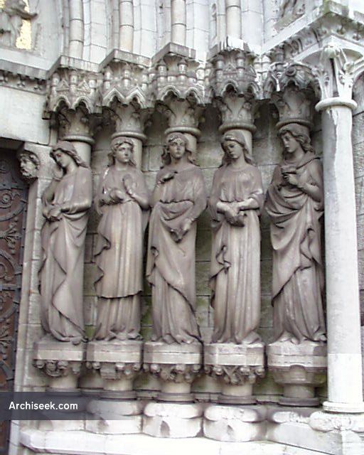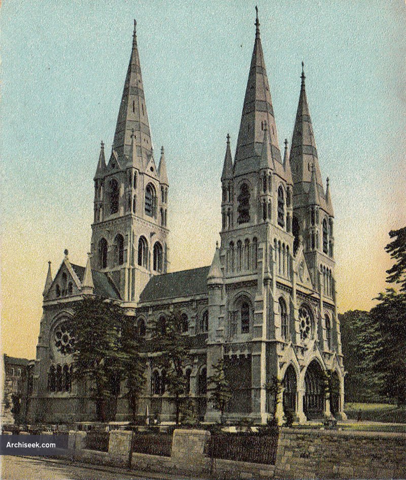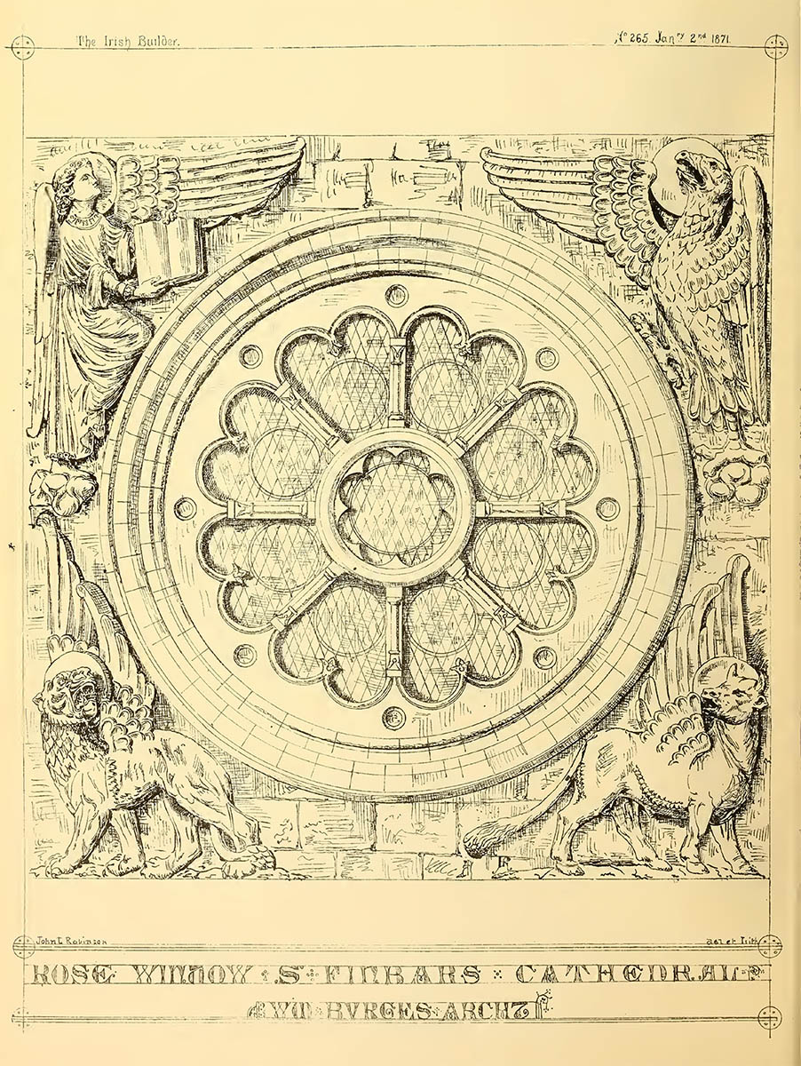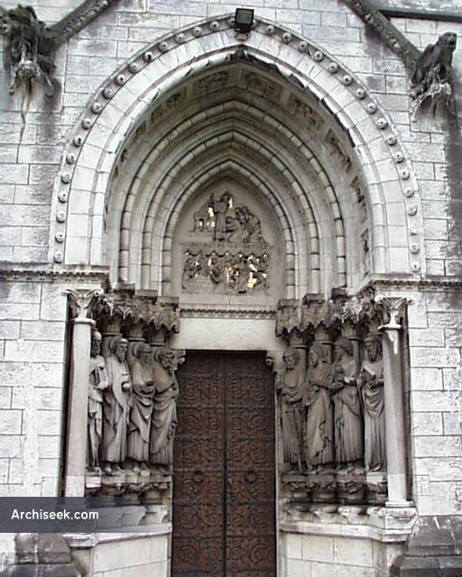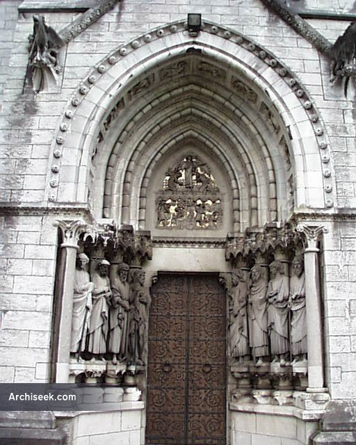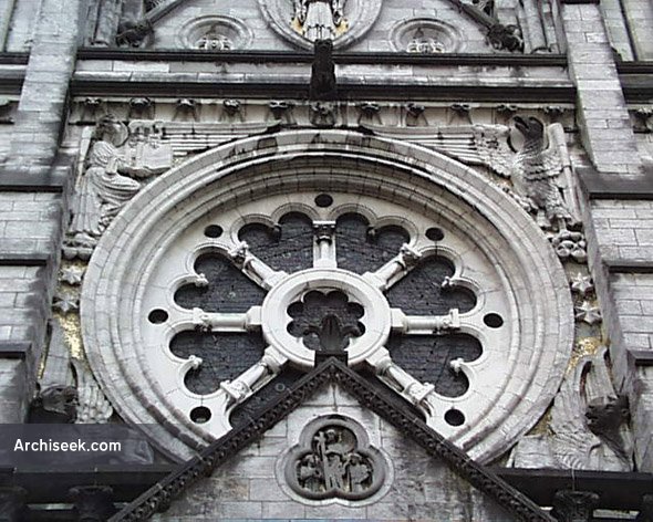 Some images are from the Irish Builder, Vol.13, 2 January 1871, showing details of the carvings of the rose windows and west tympanum, as well as a perspective of the building in 1871 before the spires were completed in 1879.