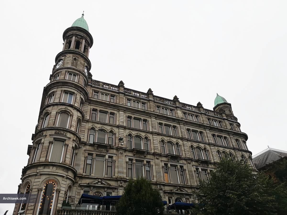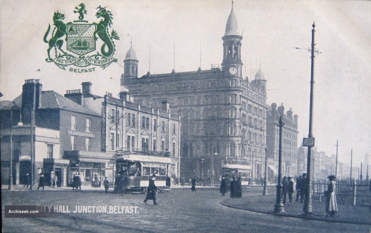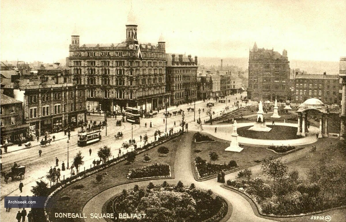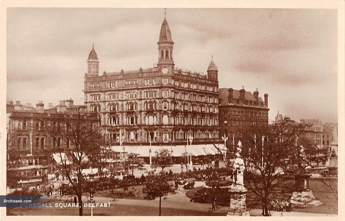 A description of the recently completed works was published in The Irish Builder, March 15, 1888- “THESE premises, situate at the corner of Donegall-place and Chichester-street, by their majestic appearance and refined architecture, not only make the venerable Linen Hall close by look like a mere shed, but, actually dwarf Messrs. Richardson, Sons, and Owden’s imposing block of buildings adjoining-an edifice that has always justly, perhaps, been looked upon as one of the most majestic and boldy-conceived in all the north of Ireland.