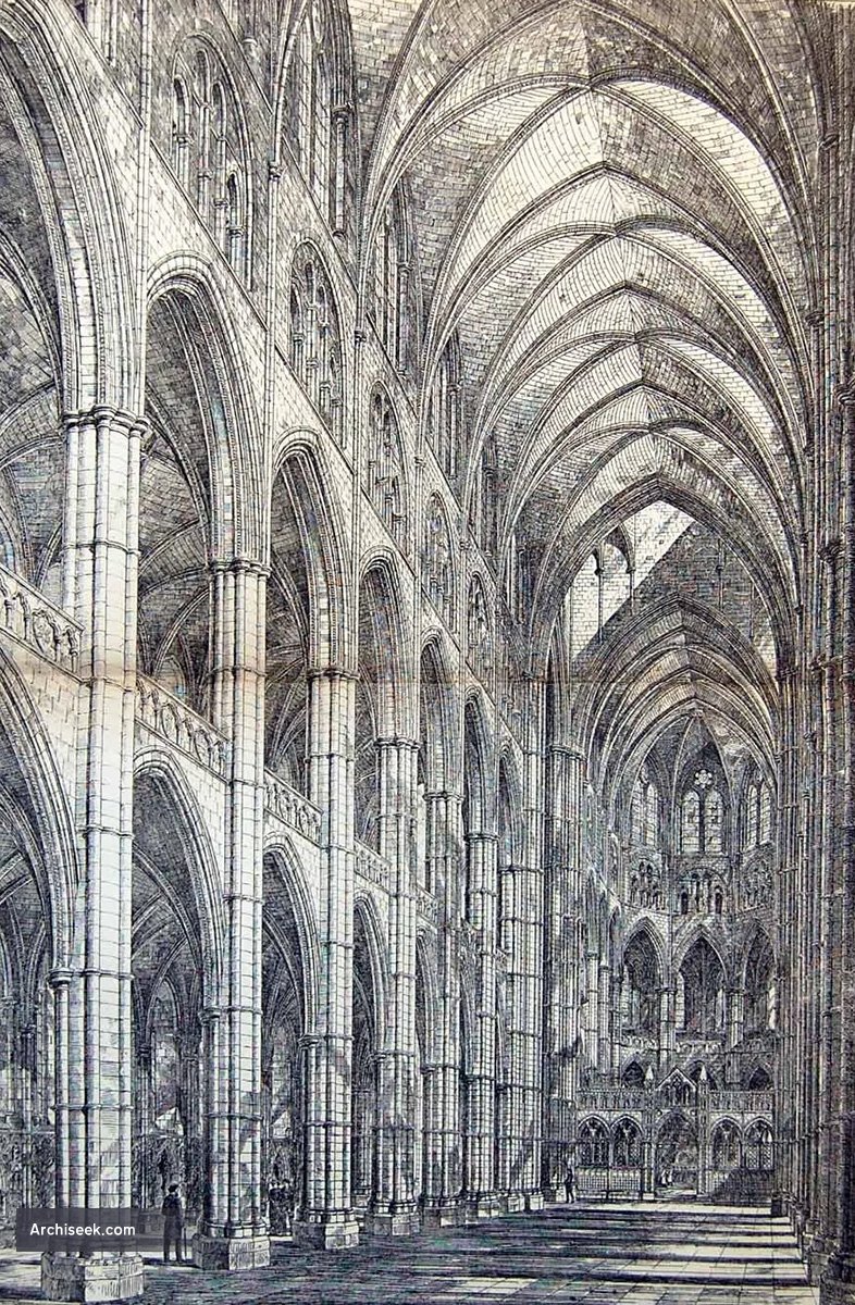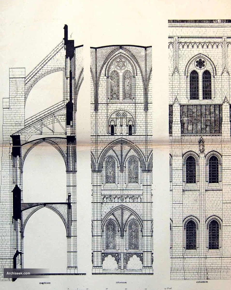James Brooks’ design for Liverpool Cathedral, which was submitted in competition against William Emerson’s & Bodley & Garner’and which placed second. The site for this competition was adjacent to George’s Hall. Another competition was later held.