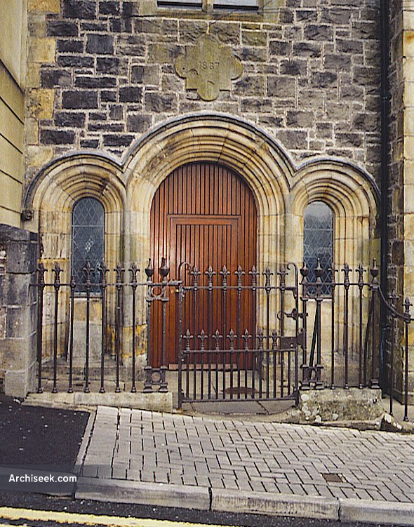 Designed by Thomas Elliot who also refitted the Methodist Church (adjoining but up the slope of the hill), this is a fine little neo-Tudor hall. McArthur was an Enniskillen man who went to be Lord Mayor of London and generously gave to his former congregation.