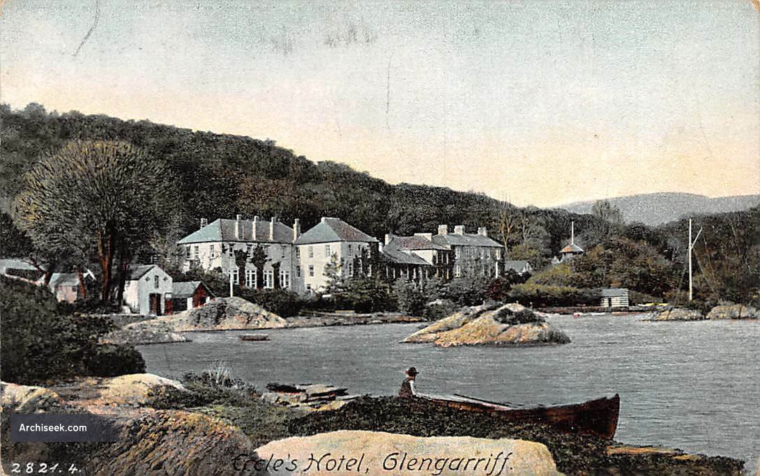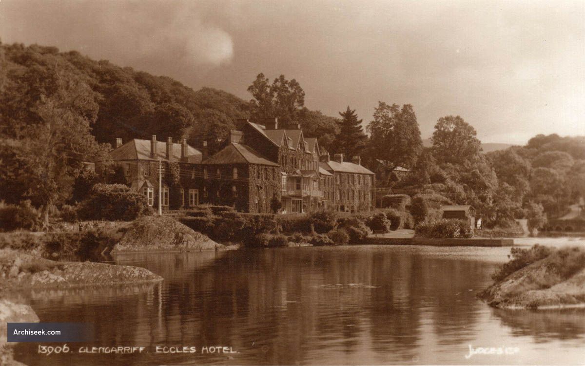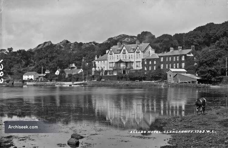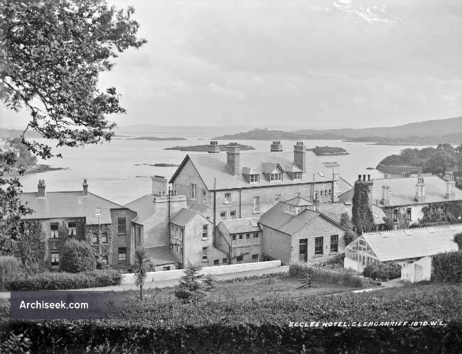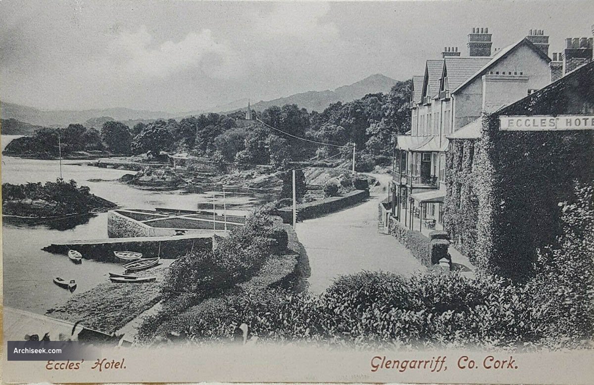 Long established and rambling cluster of hotel buildings, almost like a small village along a small and scenic harbour. Since 1745 there has been a hostelry of some sort in this location. According to records at Bantry House, in 1835 Thomas Eccles first rented land and buildings here, taking over the inn on site. John Eccles, son of Thomas carried out major reconstruction of the Eccles in the 1890s and changed the name from the Glengarriff Inn to The Eccles Hotel. Extensions by Arthur Hill in the late 19th century for John included the rebuilding of the central block with its prominent gables. The Eccles family owned the hotel into the mid 1900s.