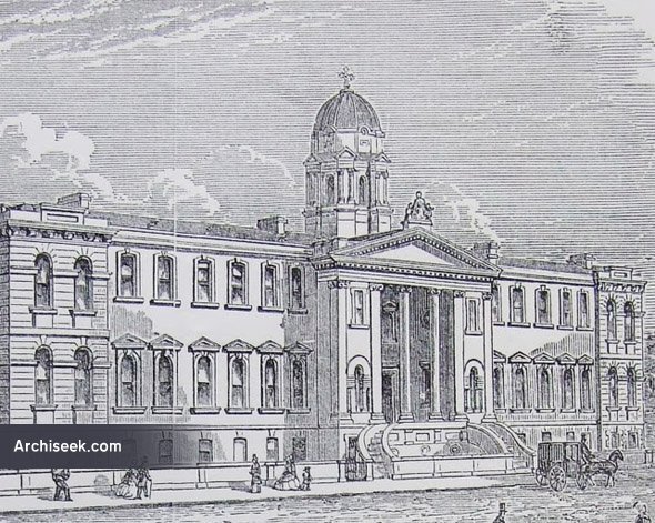 Incomplete scheme that added a chapel and wards to the earlier building by John Bourke of 1861. The scheme included a tower on the main block, possibly to emulate the nearby Rotunda Hospital and a campanile to the rear. Neither were constructed although the image featured on hospital headed paper for some years.