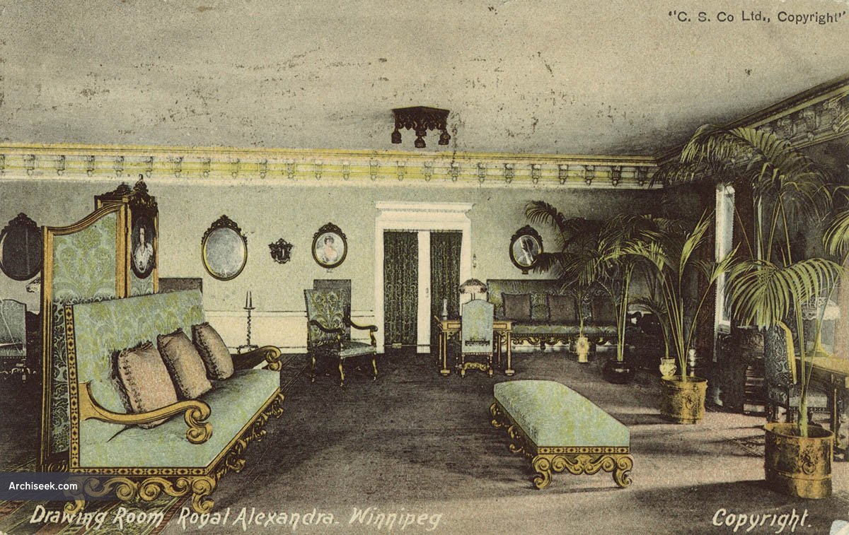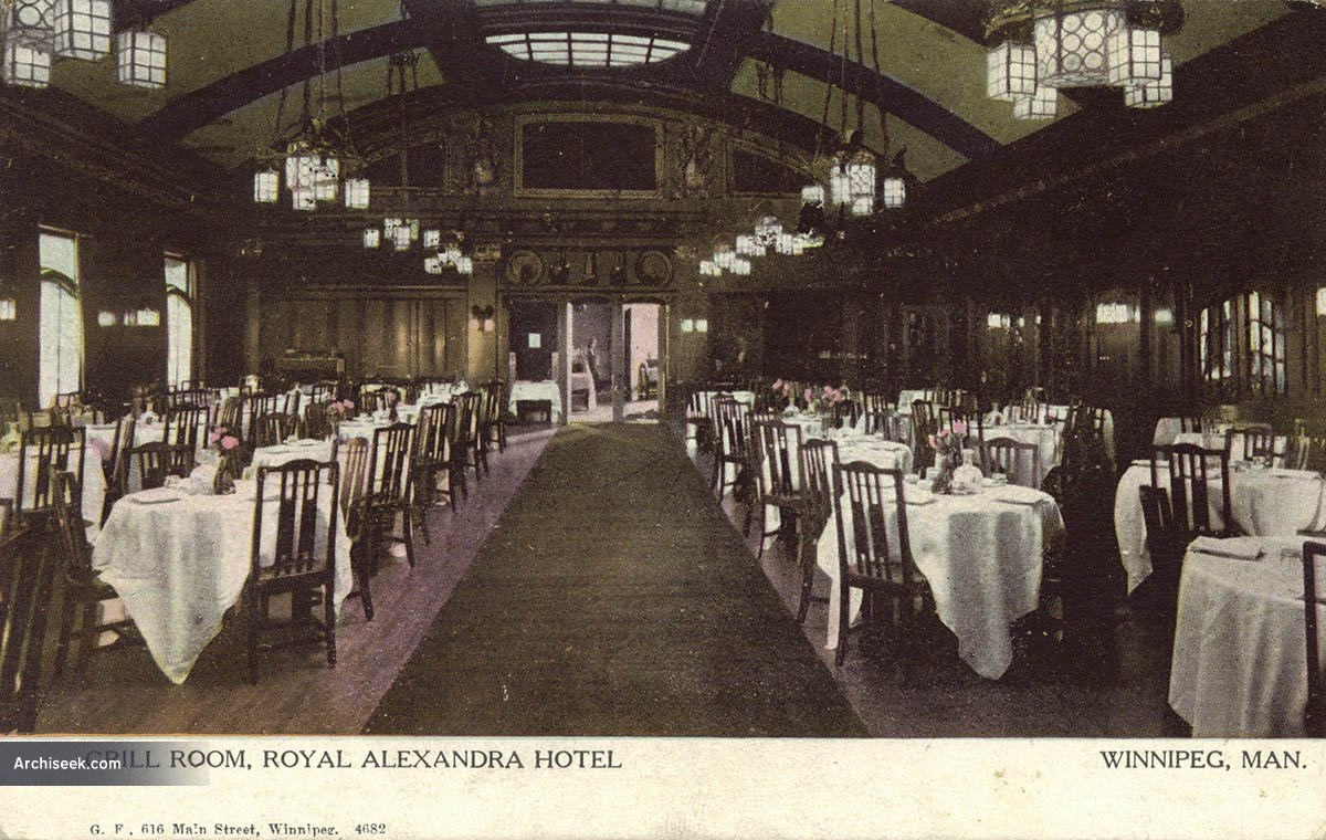 The 18th and most luxurious of the Canadian Pacific Railway’s hotels, the Royal Alex closed in 1967 and was demolished in 1971. For many years, its ornate interior was the social hub of Winnipeg. However, like many large hotels, it was unable to adapt to changing fashions in travel and the decline in well-heeled rail passengers and closed. Fittings from the building including the Grill Room were saved prior to demolition.