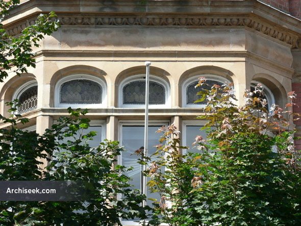 A handsome Arts and Crafts influenced post office, by Robert Cochrane of the Board of Public Works, which offers a pleasing contrast to the Classical facades of neighbouring buildings. The elegant arcaded central bay, unusual canopied doorways and curving parapet are particularly striking features.