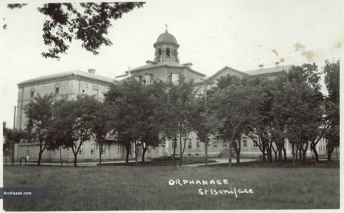 L’Hospice Taché, later known as Taché Hospital was a large building near St. Boniface Cathedral founded by the Grey Nuns. The earliest part of the complex (the lower wing in the photographs) was built in 1883, as Taché Academy, initially intended to be a girl’s boarding school. But it also housed orphans, and when the boarding school was closed in 1897, the building was reopened as Taché Hospice for orphans and elderly women. Between 1908 and 1910, three additional wings were constructed. The Orphanage was closed in 1935. it reached peak occupancy, 410 patients, in 1969. Closed after the completion of Centre Taché in 1973 and demolished shortly after.