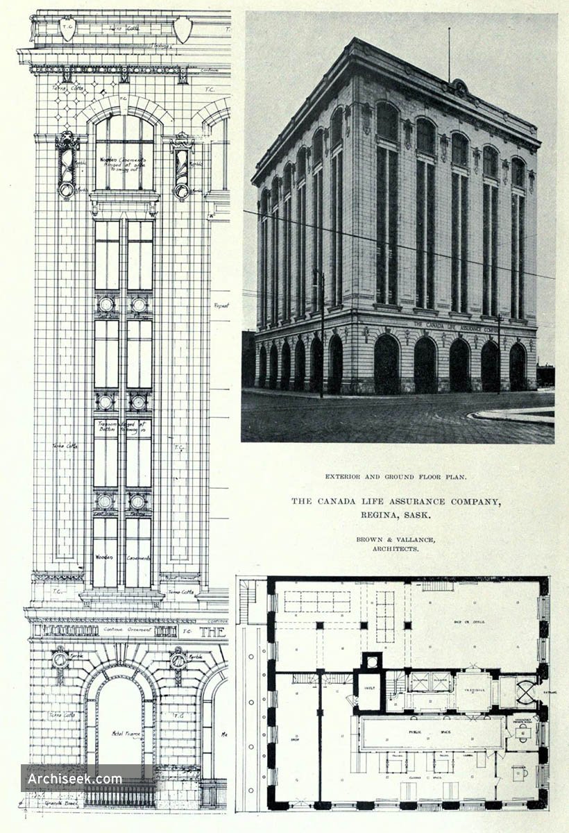 A fine white terra cotta facade with influences from the Chicago School, this office building was designed by Montreal architects Brown & Vallance. Still in use today, it is one of Regina’s architectural landmarks.