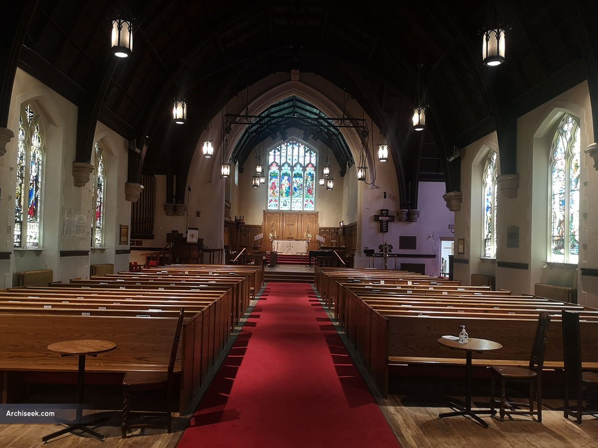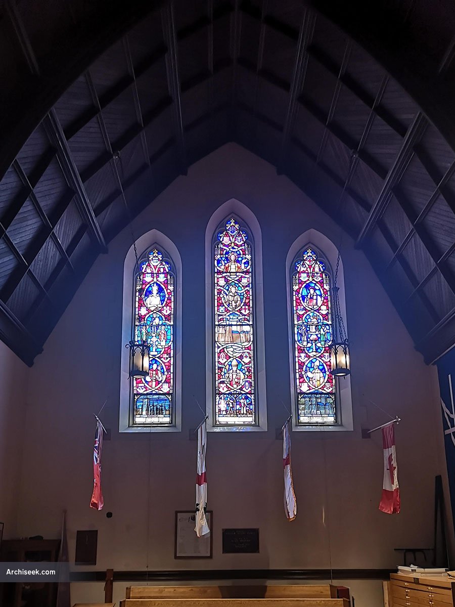Under the guidance of the Archbishop Samuel P. Matheson, the present building (the fourth church on this site) was constructed in 1926 using much of the stone from the previous building. Designed by Gilbert Parfitt and Edgar Prain, it incorporates elements of early medieval English architecture, with a Norman tower and barrel-vaulted ceiling. Parfitt was the Provincial architect from 1924, replacing Victor Horwood, and held the position until retirement in 1957. Two of the stonemasons, both in their eighties, who worked on the Cathedral had also worked on the 1862 building. In 1959, a two-storey addition was built onto the northeast corner and now houses the Dean’s Vestry and Office, the Sacristy, the Church Office and the Choir Room.