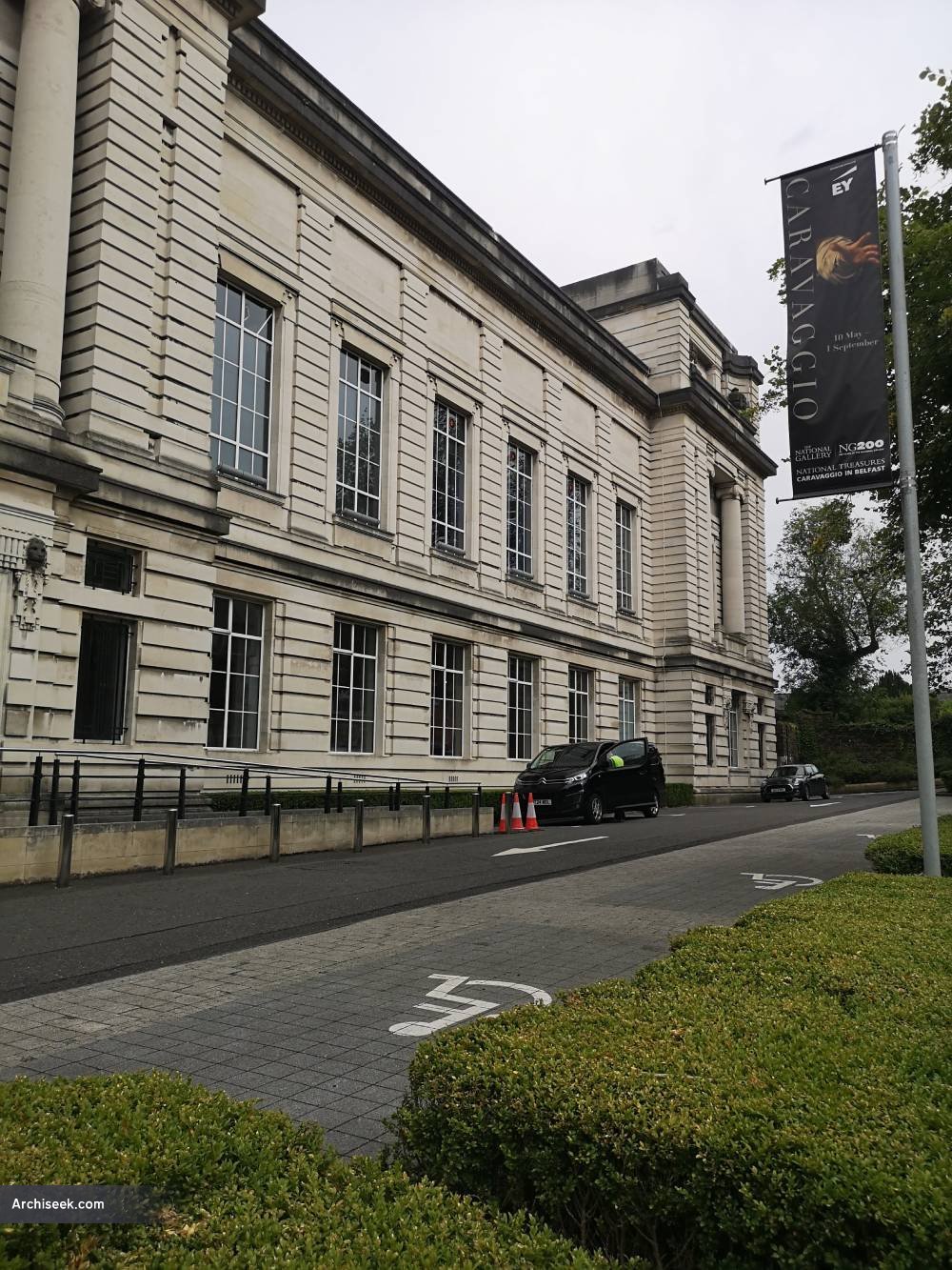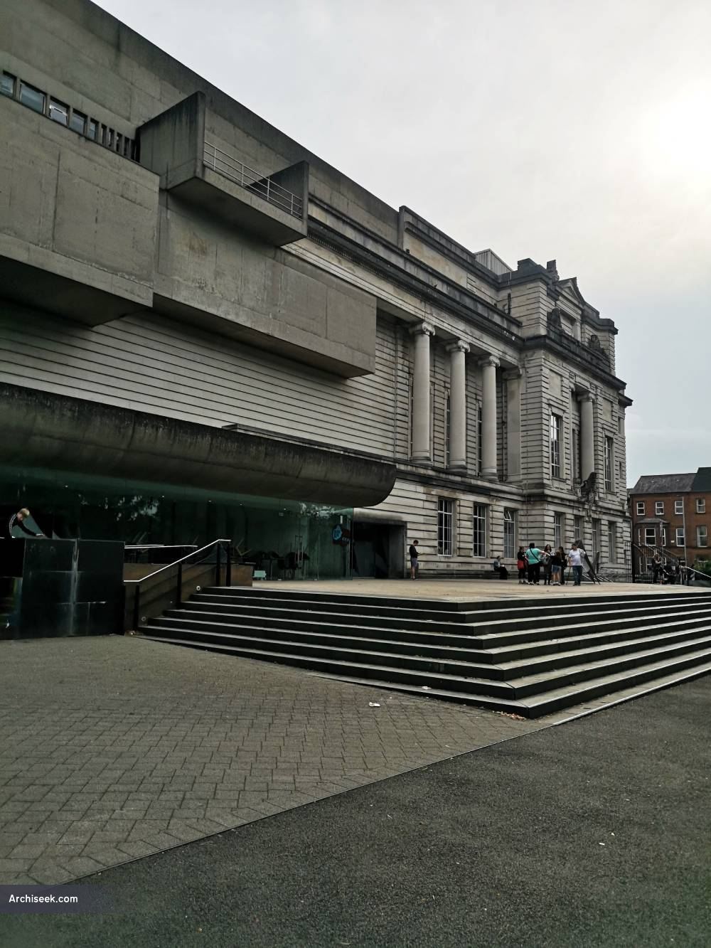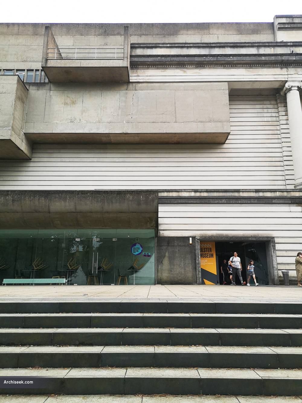 According to the Twentieth Century Society “Classical features of the original building may have been extended towards the extension’s concrete cantilevers with the intention of sensitively blending the two styles together (at the request of Belfast city planners of the time); however, the concrete galleries seem to collide with and envelop the classical detail. In spite of all this, the classical proportions of the original design are still evident and maintained in the massing of the extended whole – deliberately or otherwise. The building is a landmark, inspiring, uplifting and idealistic.”