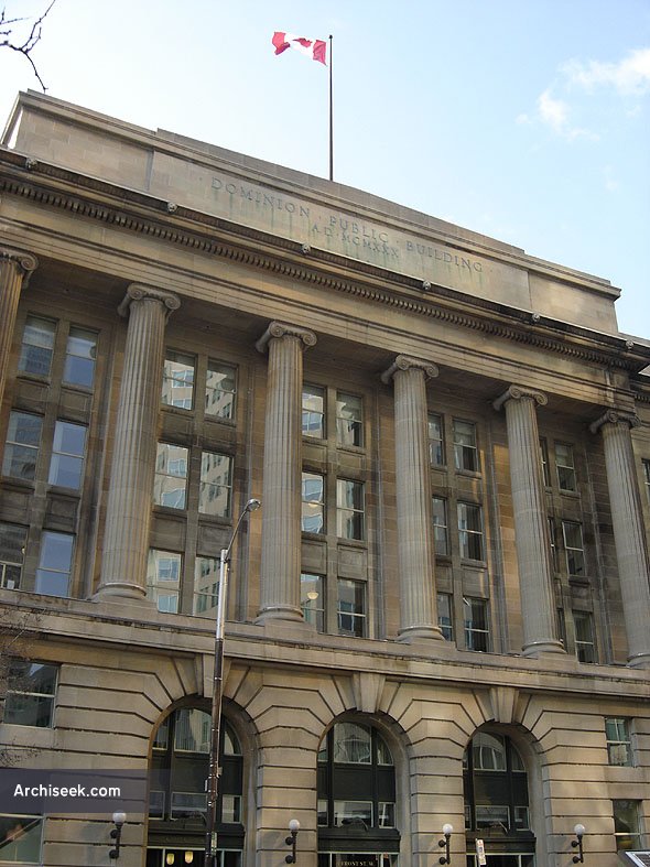 The Dominion Public Building, to the east of Union Station, was originally built as the customs house for Toronto. Its curved front provides an impressive approach to the station. It is still a Government of Canada building and houses one of the law libraries which support the Taxation Dept.