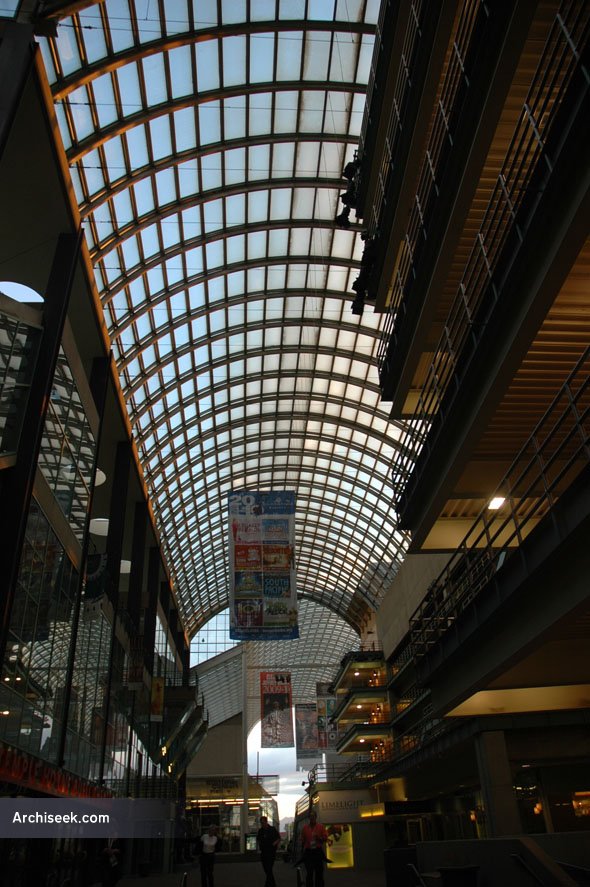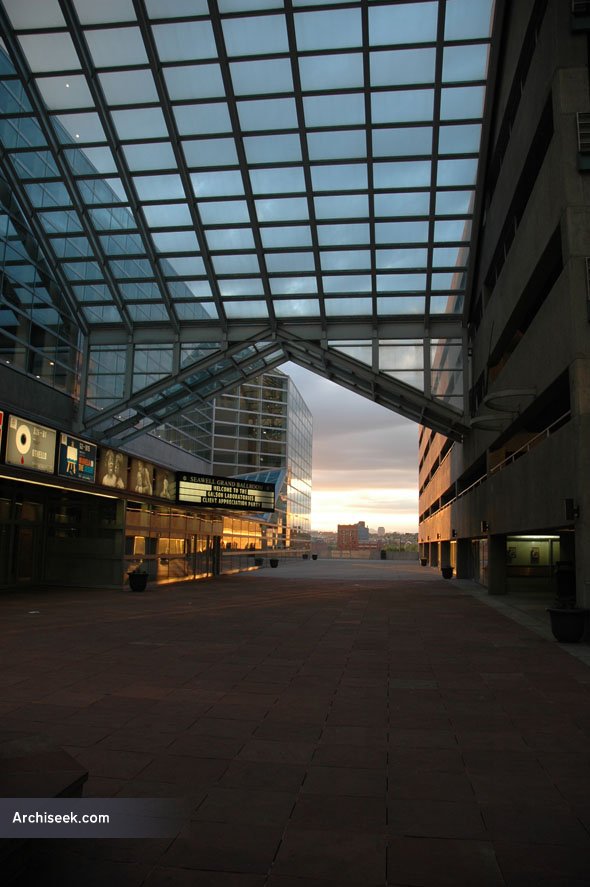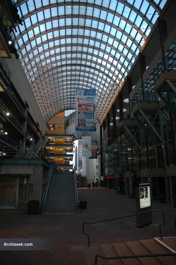 The Denver Performing Arts Complex is the largest performing arts complex under one roof, and the second-largest center of its kind in terms of number of venues and seating capacity. Connected by an 80-foot-tall glass roof, it houses ten performance spaces on its four-block, 12-acre site, it was master-planned by Irish architect Kevin Roche.
