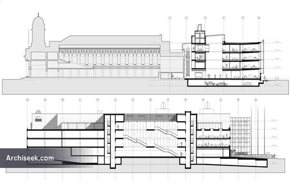 The design for the new Civic Offices for Cork City is the product of a ‘Design and Build’ competition set by Cork City Council in Feb 2004. The project was completed in Feb 2007. The brief required that the successful scheme maximise the economic potential of the site while providing an administrative building of the highest quality. The completed building provides 9,200m² of office space, together with 140 car park spaces at basement and roof top levels.