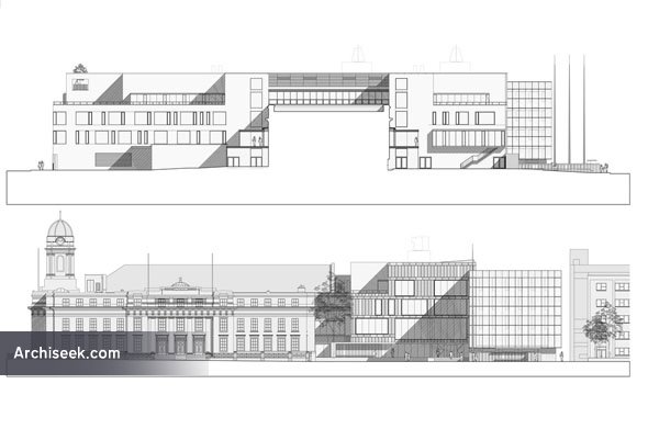 The three facades of the existing City Hall provide independent access to a variety of civic functions: a concert hall accessed through the north façade of the existing building facing the River Lee, a Lecture Hall accessed from the east, and the Council Chamber entered from the west.