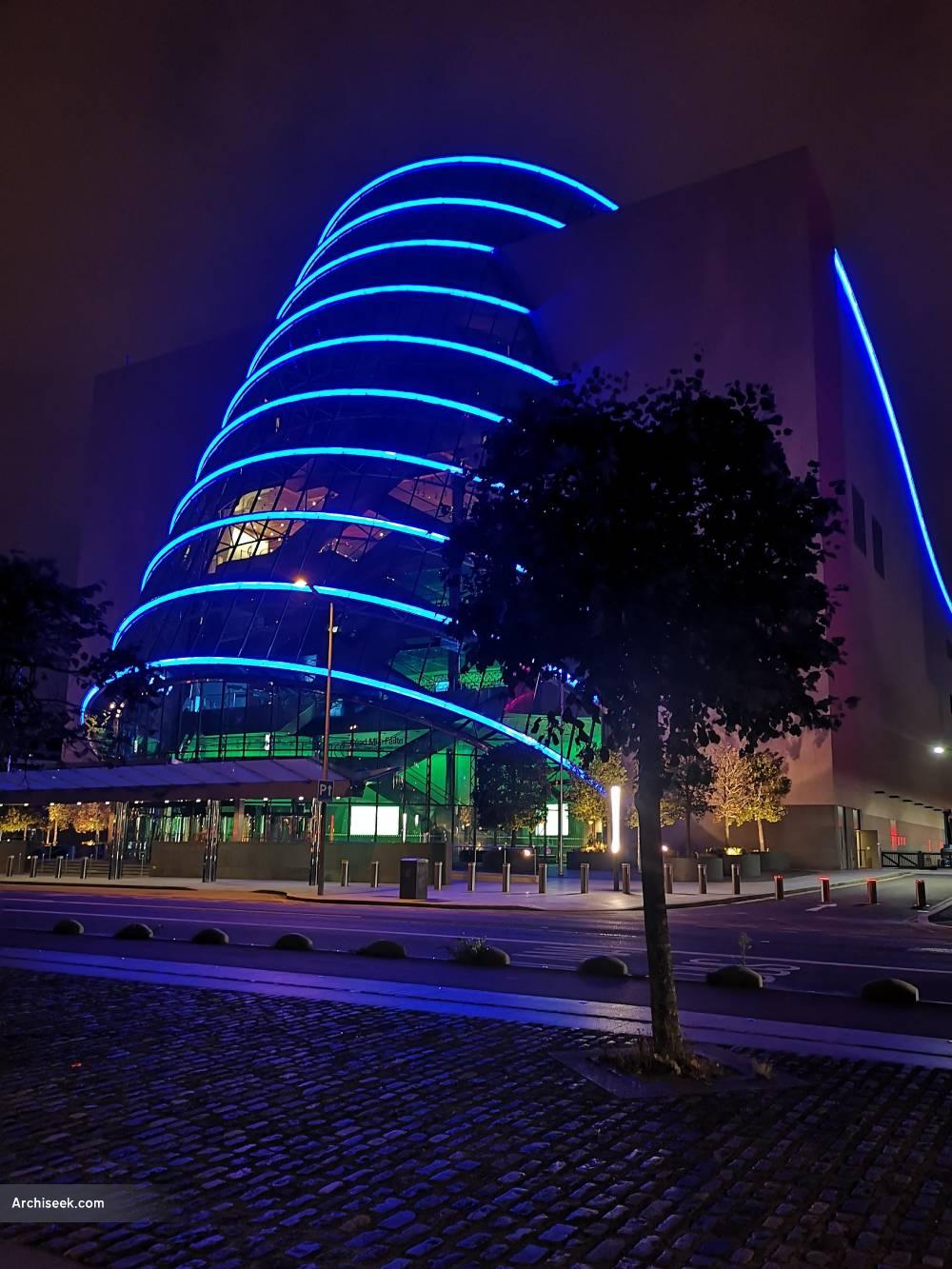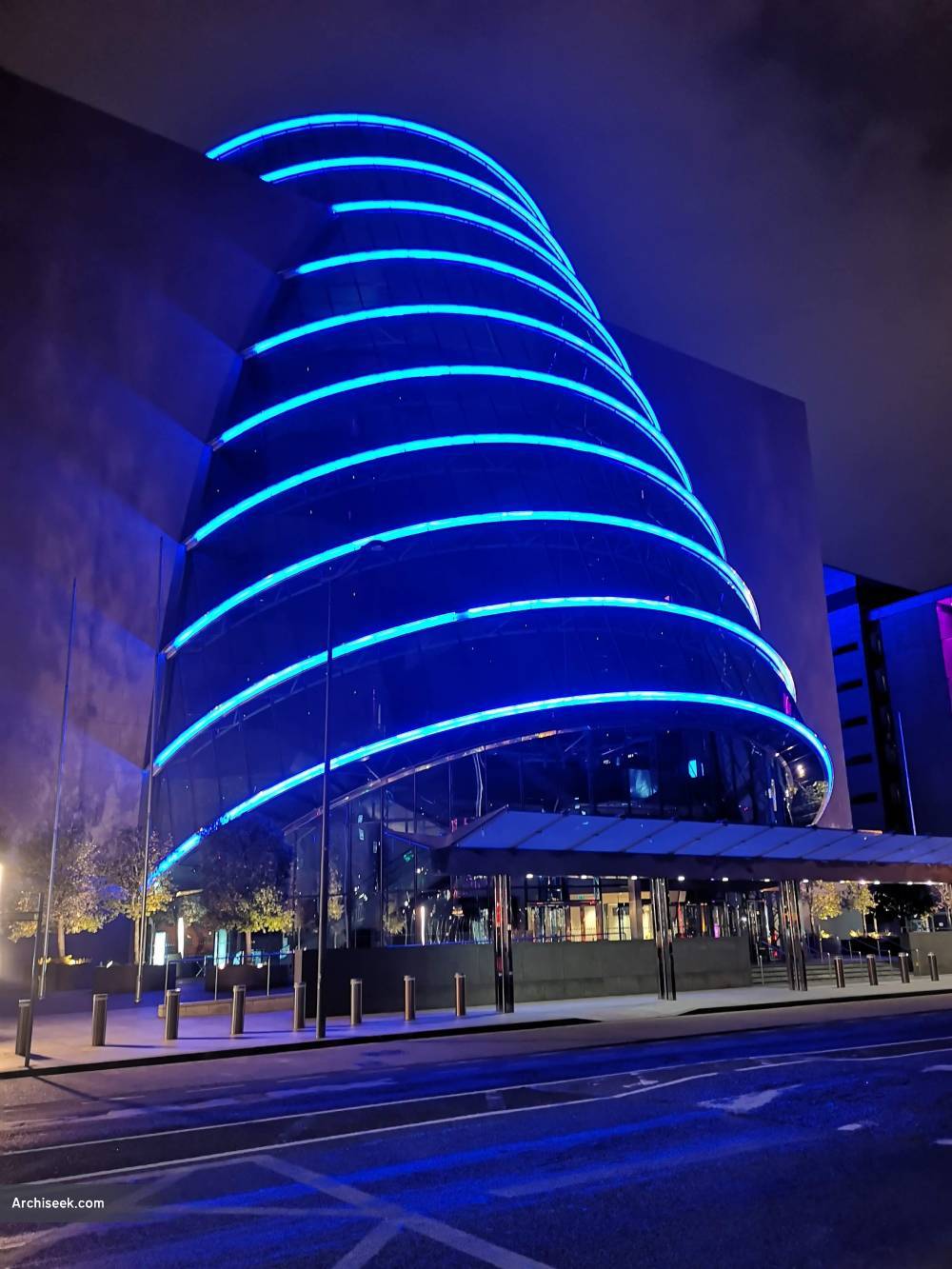 The Convention Centre Dublin is a purpose-built international conference and event venue located in Spencer Dock. Its design features a unique glass-fronted atrium running the full height of the building which gives visitors panoramic views of the River Liffey, Dublin’s city centre, and the Wicklow mountains. Designed by Cork-born architect Kevin Roche.