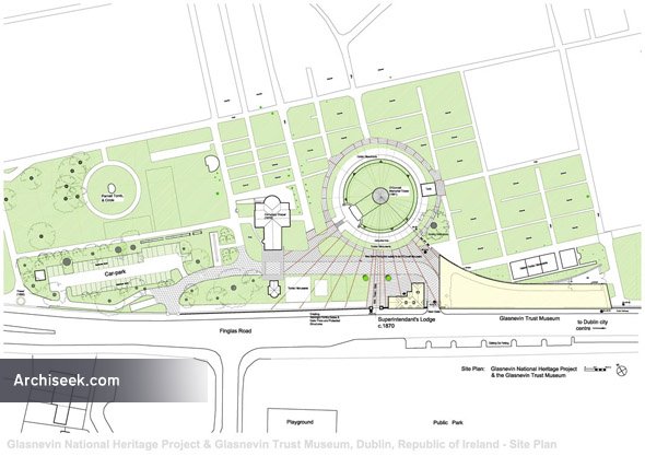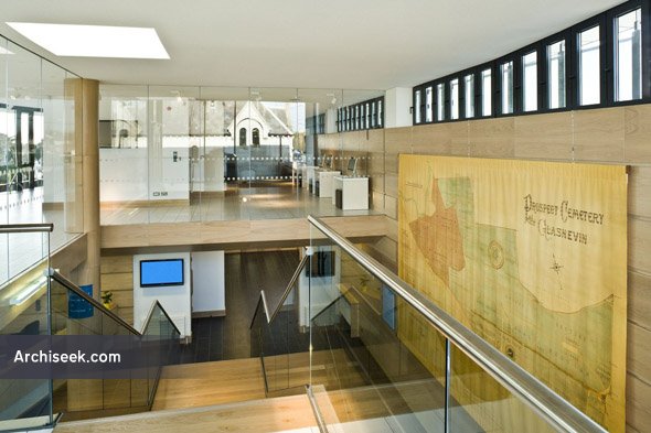 Glasnevin Cemetery is run by the Glasnevin Trust, the cemetery first opened in 1834, and from the beginning was completely open to people of all faiths. Very little space was available for any new buildings within the cemetery walls; the site for the new building was the area immediately east of the former Superintendant’s Lodge, located between the calp boundary wall of the cemetery and the historic Republican graves. The project included the conservation and refurbishment of the 19th century former Superintendent’s Lodge, – a protected structure – for continued use as executive offices, and also extensive areas of stone paving and landscaping, in addition to the new Museum.
