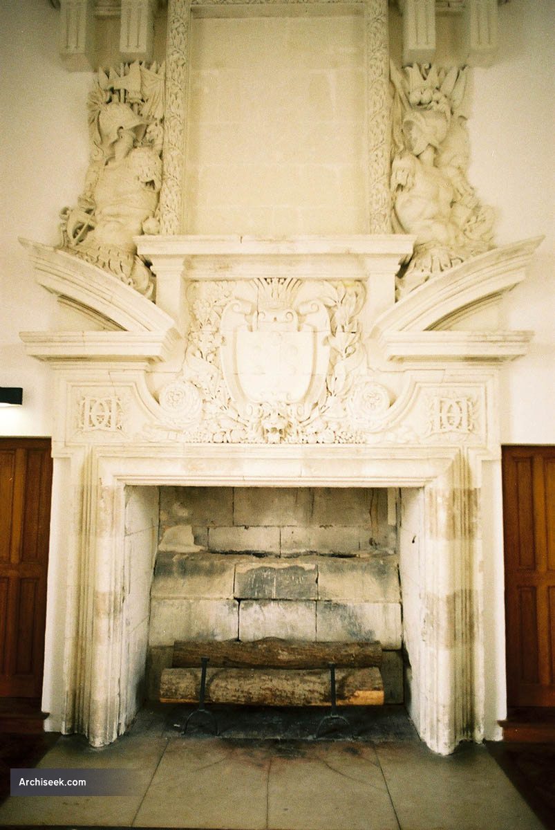 The illustrated ceiling design is from the small library of Catherine de Medici. It dates from 1525 and is made from oak. The chimney pieces illustrated are both from the gallery. The gallery spans the river Cher and is 60 metres long and 6 metres wide. Only one of the chimneys is part of a fireplace. One is a decorative surround for the doorway leading to the left bank of the river. This chimney piece is from the Louis XIV Living Room. It features the Salamander and Stoat commemorating King Francois I and Queen Claude of France.