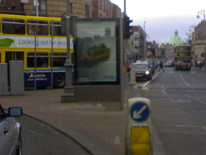 There are a number of disturbing aspects about this project. The most important is obviously the horrible aesthetic consequences. The second is the sneaky way that the proposal is being put through planning; 70 individual applications – thus potentially costing 1400 euro for an individual to object – lodged the week before Christmas, hoping that people wont have enough time to object. Even if only half of the signs fail in planning they will still have a terrible visual impact on the city – especially on streets which are already suffering with too much traffic. Another disturbing aspect is that the council are complicit in this vandalism; in exchange for allowing these signs the company will install some sort of bicycle rental stations. To me this represents the worst kind of shallow environmental tokenism; I wonder how many Dubliners are dying to cycle around the place but simply can’t afford the likes of the 100 euro Lidl bike I use? However the idea of this failed european experiment in bicycles for the masses is probably marxist enough to have the support of the environmental lobby. If the experiment fails (which it will) we’ll be stuck with these huge ads cluttering up the streets.