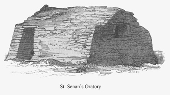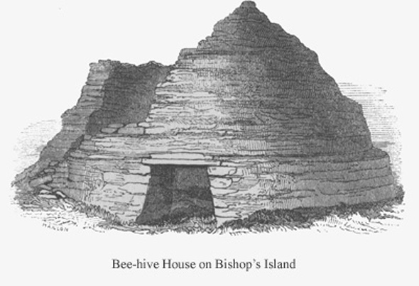 Bishop’s Island, near Kilkee on the Loop Head Peninsula in County Clare, has long held a fascination with locals and visitors alike for centuries. It is shrouded in mystery due mainly to its inaccessibility and remoteness but also to the fact that its inhabitants were ascetic monks who used its very remoteness for their chosen lifestyle. There is some conflict as to the date of construction of the ruined buildings on the island. It is argued in an article in Archaeology Ireland magazine of Spring 2005 that they were constructed pre 12th century but most probably no earlier than the 8th. The two remaining ruins consist of a ‘Clochán’ or type of dwelling and the other a Church that is of dry-stone construction similar to the famous Gallerus Oratory in Co. Kerry. One of the more unusual features of the Church is that its east window has a smaller aperture internally rather than externally making it unique in Irish pre-Romanesque architecture. The construction of the buildings on the island represented minor development in ecclesiastical terms and would not have been seen to be at the forefront of architectural or liturgical innovation.