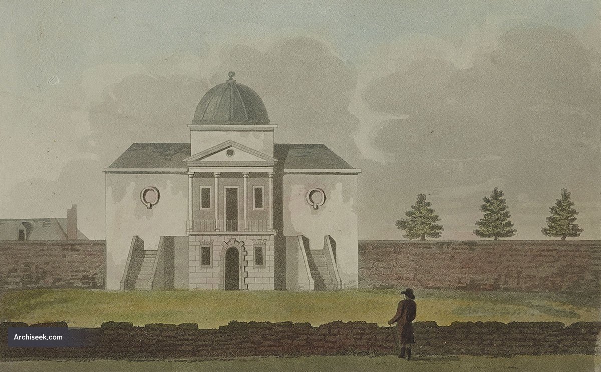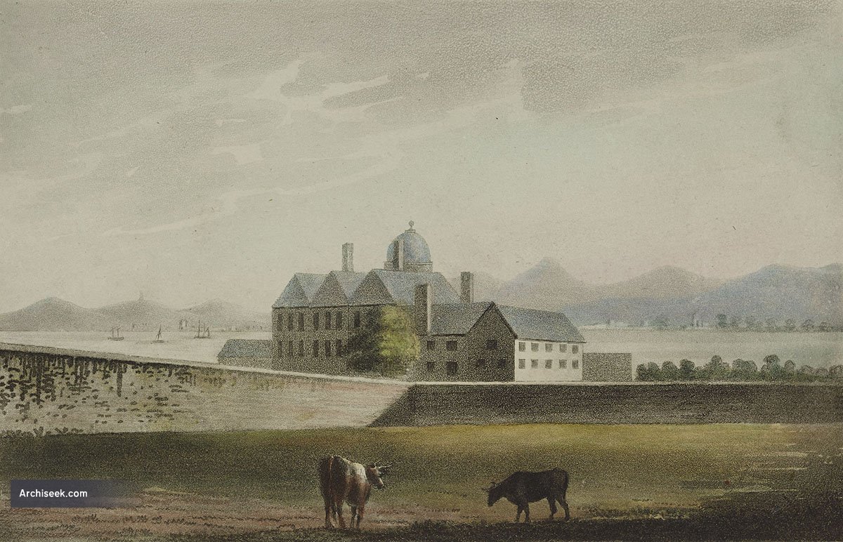 The school closed in the early 19th century, the 1830s, and was turned into a bathing house and became known as Kingscourt House or Royal Kingscourt Baths. Later demolished, but sited close to the Fairview railway viaduct. Image published in History of the City of Dublin, 1818.