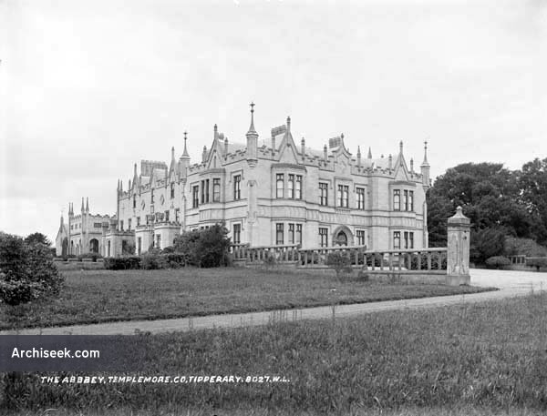 Constructed on the site of an earlier house, Templemore Abbey was a vast neo-Gothic mansion designed by one of the masters of the genre in Ireland, William Vitruvius Morrison. The building contains elements of much of Morrison’s best work in the style, Elizabethan gables, battlements and turrets. Sadly the building was torched during the War of Independence after it had been used by British forces as a base for B Company of the Auxiliaries. After they left the building in May 1921, it was destroyed in an arson attack.